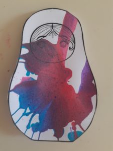 Nous avons également décoré de jolis matriochkas en mettant de la peinture dans l’essoreuse à salade.