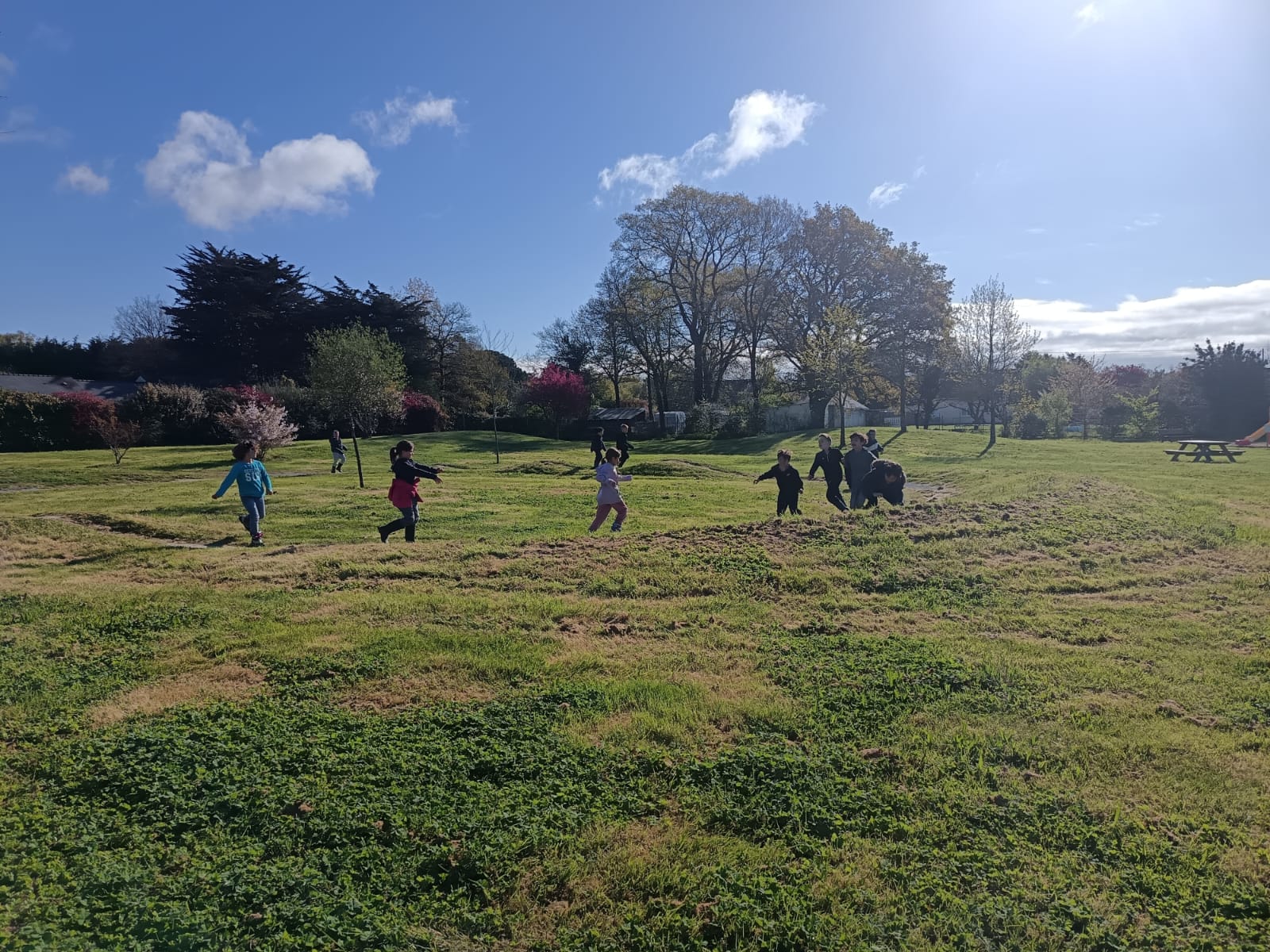 La classe du dehors : apprendre autrement, en lien avec la classe Toutes les deux semaines depuis le début de cette période, les élèves participent à la classe du dehors, en partant en même temps que la classe de PS/MS. Ces matinées au parc de Quilly sont l’occasion d’apprendre autrement, tout en restant pleinement en