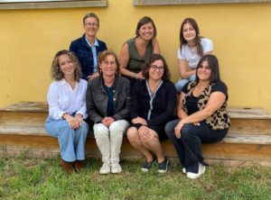 Notre équipe: en haut : Marie-Anne Fleury, enseignante spécialisée, Rachelle Noblet enseignante en maternelle, Jodie Guyomart en service civique, en bas: Axelle Desprez, enseignante stagiaire, Sabine Kerloch cheffe d’établissement et enseignante en cycle 3, Nolwenn Pringault enseignante en cycle 2, Pauline Le Gall ATSEM.